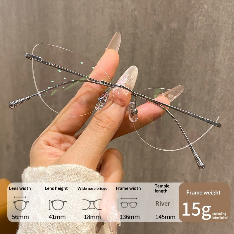 Pure Titanium Rimless Cat-eye Glasses For Women Ultra-light Comfortable And Blue-light Blocking